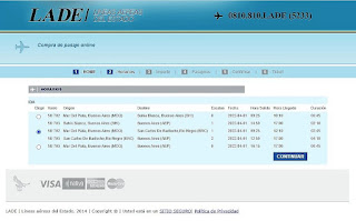 Como verán en la captura de la imagen siguiente, el sistema ofrece varias opciones para el tramo MDQ-AEP, todas al mismo precio ($5018,90 = u$s 46.50). Además del vuelo directo, una de ellas incluía escalas en BHI, BRC y el regreso de BRC con escalas nuevamente en BHI y MDQ. Por supuesto que preferí esa opción.
